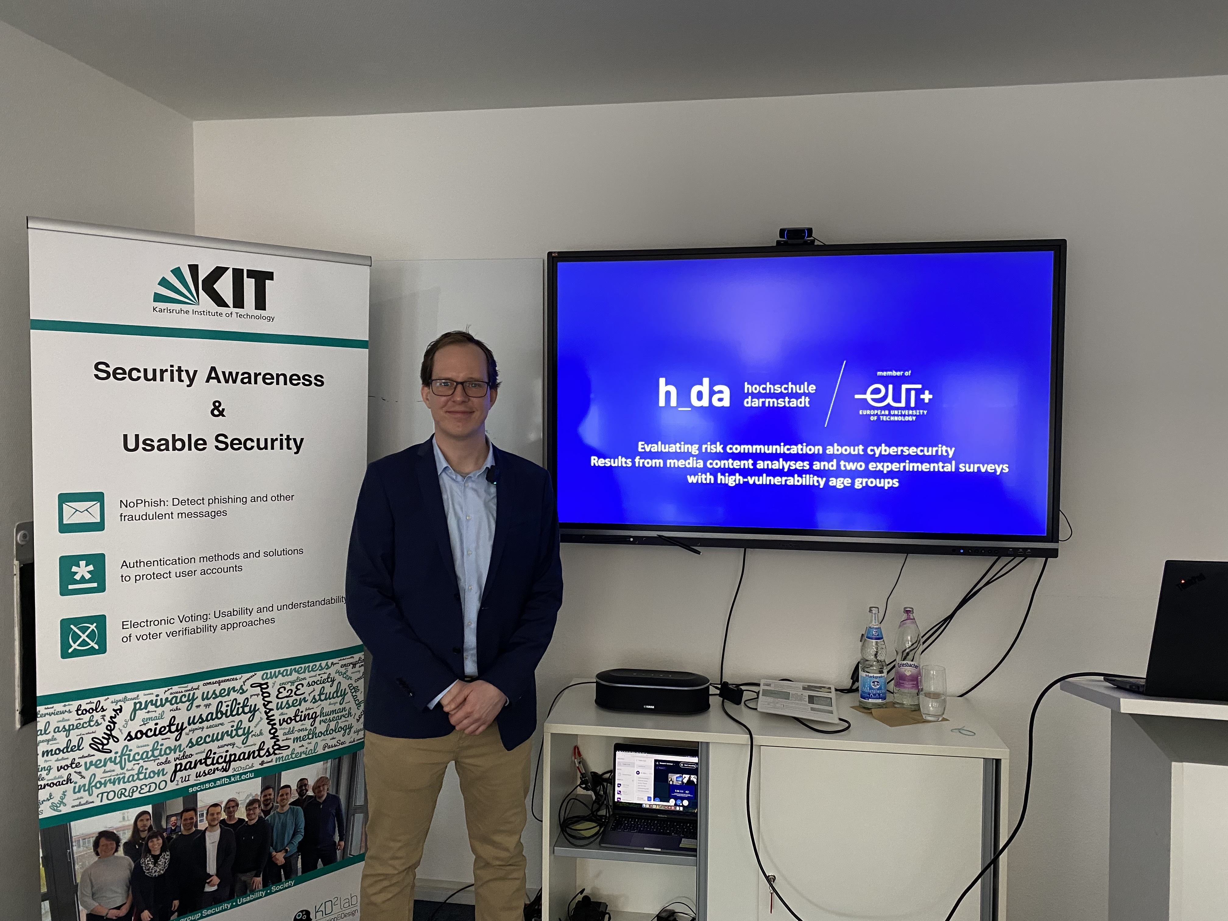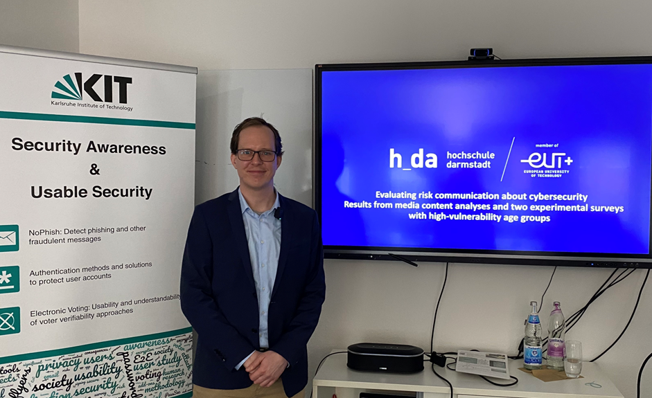 Prof. Dr. Florian Meißner hielt einen Vortrag zum Thema „Bewertung der Risikokommunikation im Bereich Cybersicherheit. Ergebnisse aus Medieninhaltsanalysen und zwei experimentellen Umfragen mit besonders gefährdeten Altersgruppen“.